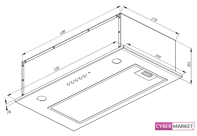 конструкция наклонная, монтаж настенный, ширина 50 см, управление механическое/кнопочное, производительность мотора 520 м³/ч, цвет черный
