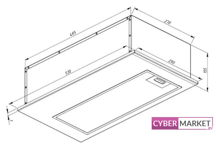 конструкция скрытая, монтаж для встраивания, ширина 53 см, управление электронное/кнопочное, производительность мотора 1250 м³/ч, цвет черный