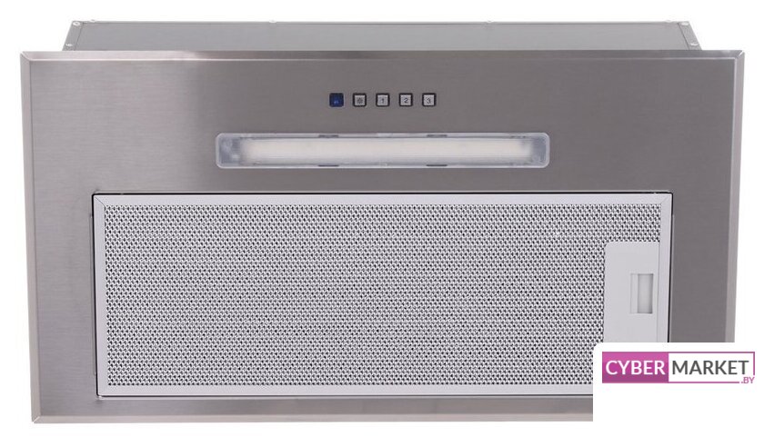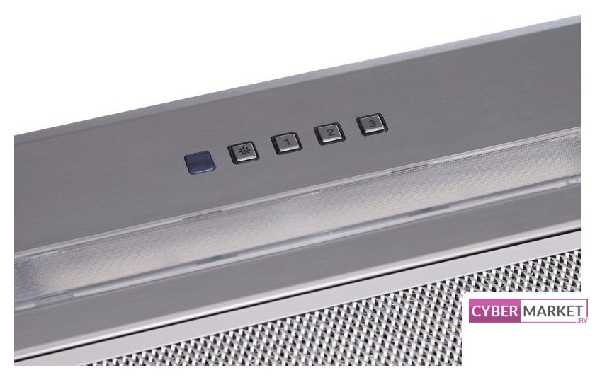 конструкция купольная, монтаж настенный, ширина 59.5 см, управление механическое/кнопочное, производительность мотора 1100 м³/ч, цвет серебристый