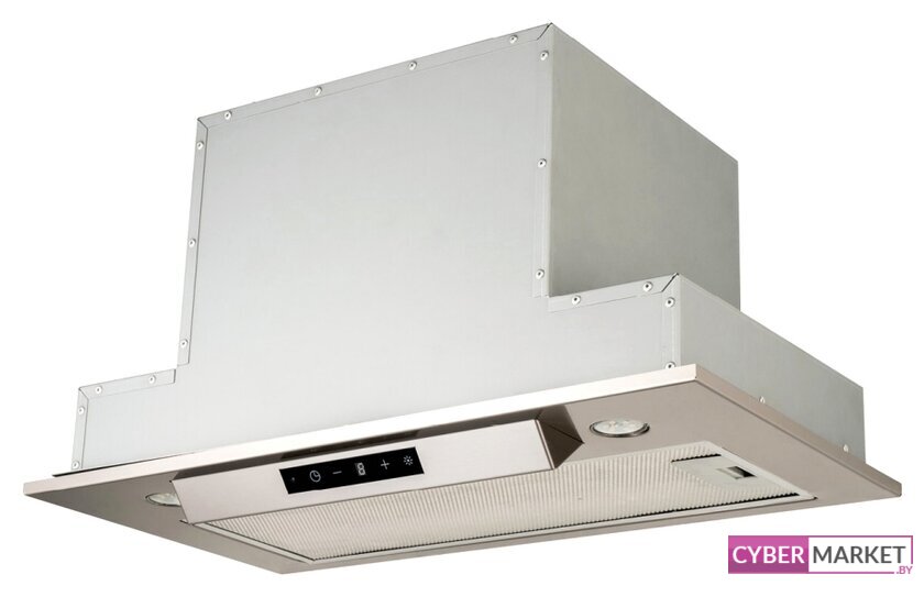 конструкция скрытая, монтаж для встраивания, ширина 53 см, управление электронное/кнопочное/дистанционное, производительность мотора 1250 м³/ч, цвет нержавеющая сталь/черный