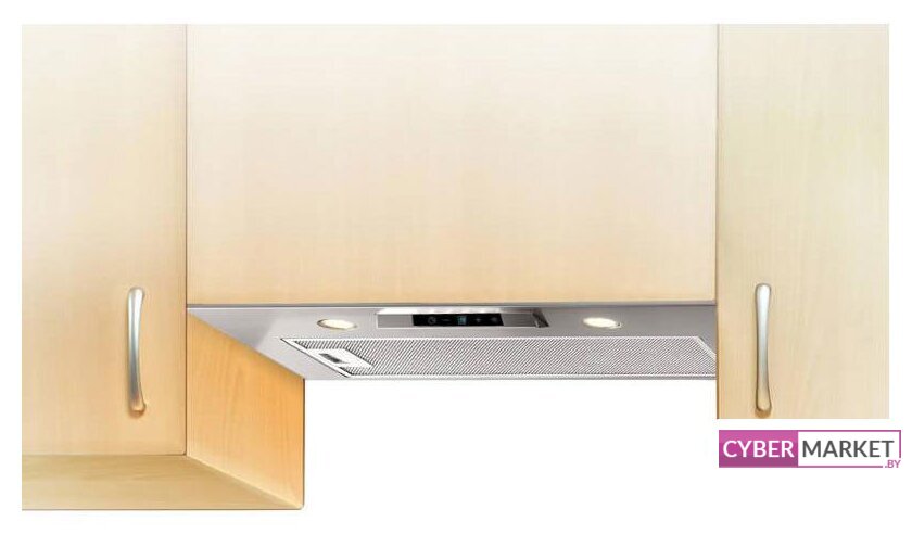 конструкция скрытая, монтаж для встраивания, ширина 73 см, управление механическое/кнопочное, производительность мотора 1100 м³/ч, цвет нержавеющая сталь/черный