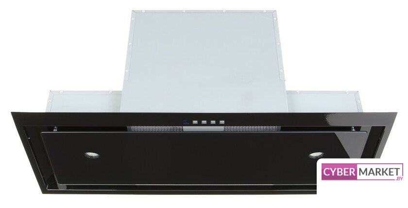 конструкция скрытая, монтаж для встраивания, ширина 59.8 см, управление сенсорное, производительность мотора 1200 м³/ч, цвет черный