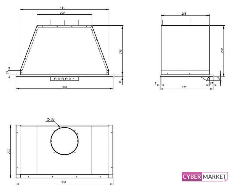 конструкция коробчатая, монтаж настенный, ширина 35 см, управление электронное/кнопочное, производительность мотора 1000 м³/ч, цвет белый