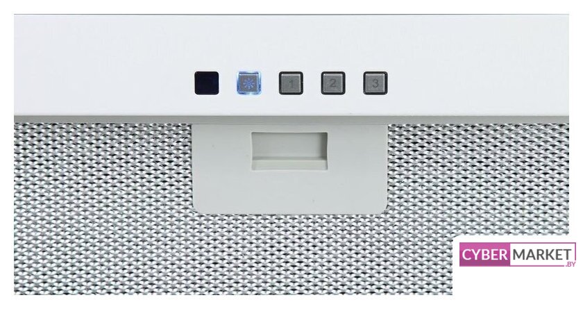 конструкция скрытая, монтаж для встраивания, ширина 59.7 см, управление сенсорное, производительность мотора 700 м³/ч, цвет белый