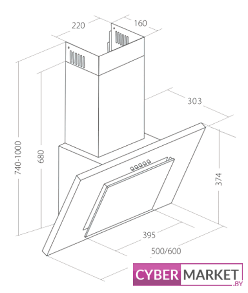 конструкция скрытая, монтаж для встраивания, ширина 59.8 см, управление механическое/кнопочное, производительность мотора 1050 м³/ч, цвет черный