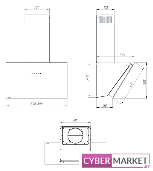 конструкция Т-образная, монтаж настенный, управление электронное/поворотный переключатель, производительность мотора 1200 м³/ч, ширина 59.8 см
