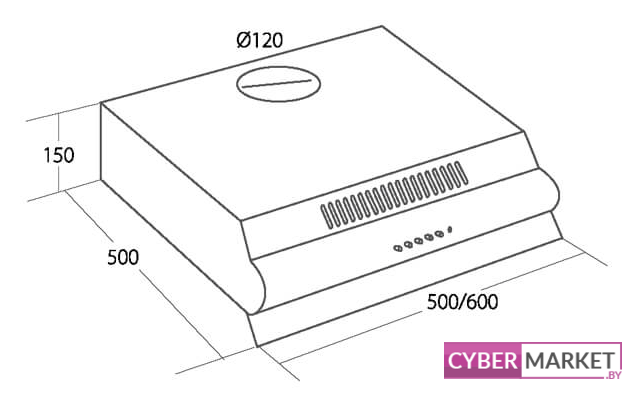 конструкция плоская, монтаж настенный/для встраивания, управление кнопочное, производительность вытяжки 166 м³/ч, производительность мотора 220 м³/ч, ширина 60 см