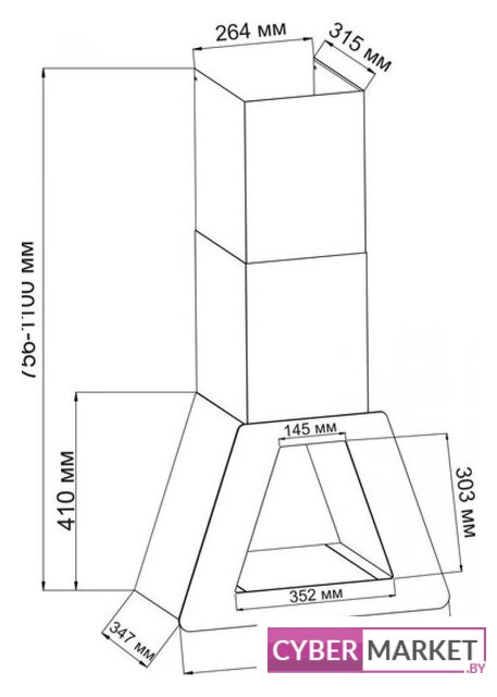конструкция купольная, монтаж настенный, управление электронное/кнопочное, производительность мотора 650 м³/ч, ширина 59 см