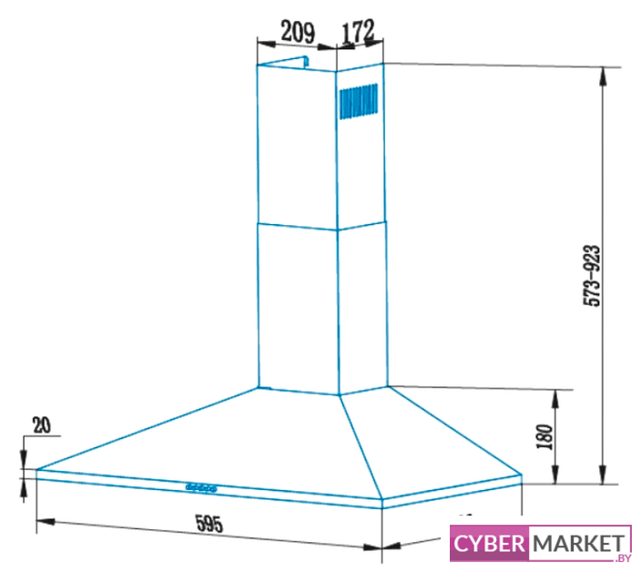 конструкция купольная, монтаж настенный, управление механическое/кнопочное, производительность мотора 650 м³/ч, ширина 60 см
