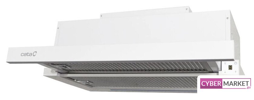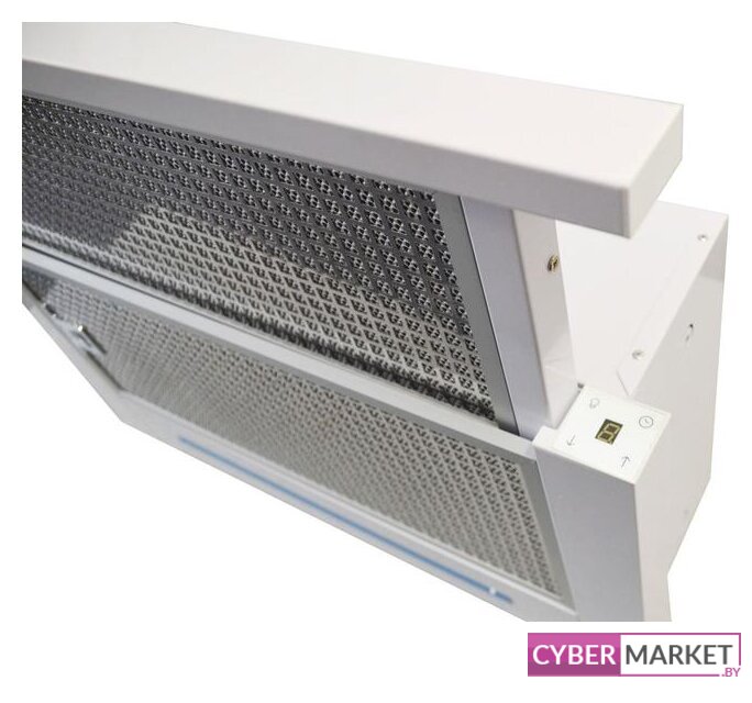 конструкция коробчатая, монтаж настенный, ширина 38 см, управление электронное/кнопочное, производительность мотора 800 м³/ч, цвет белый
