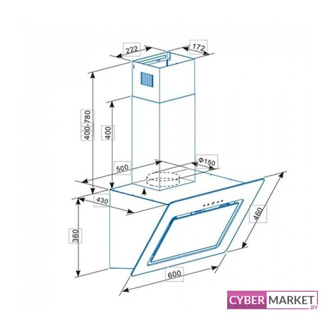 конструкция коробчатая, монтаж настенный, ширина 35 см, управление электронное/кнопочное, производительность мотора 1000 м³/ч, цвет белый