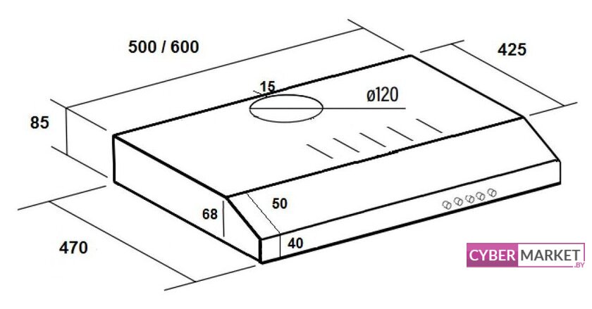 конструкция плоская, монтаж настенный, ширина 50 см, управление механическое/слайдерное, производительность вытяжки 160 м³/ч, производительность мотора 420 м³/ч, цвет белый