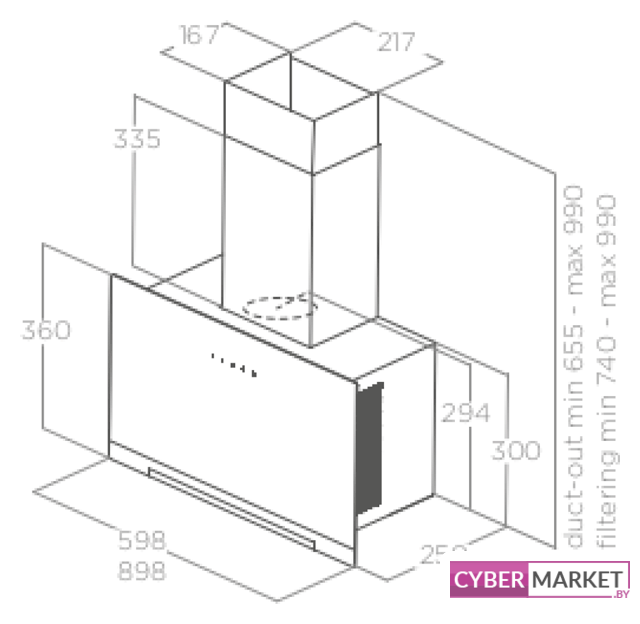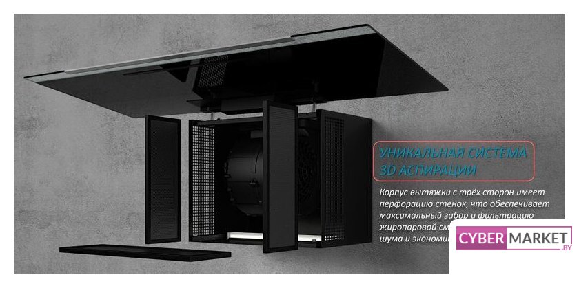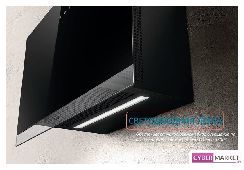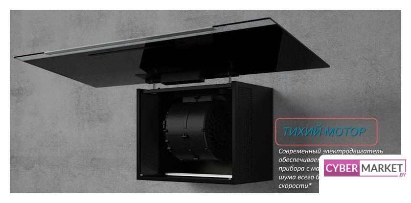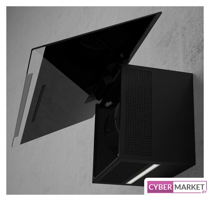 конструкция коробчатая, монтаж настенный, ширина 31 см, управление электронное/кнопочное, производительность мотора 900 м³/ч, цвет черный