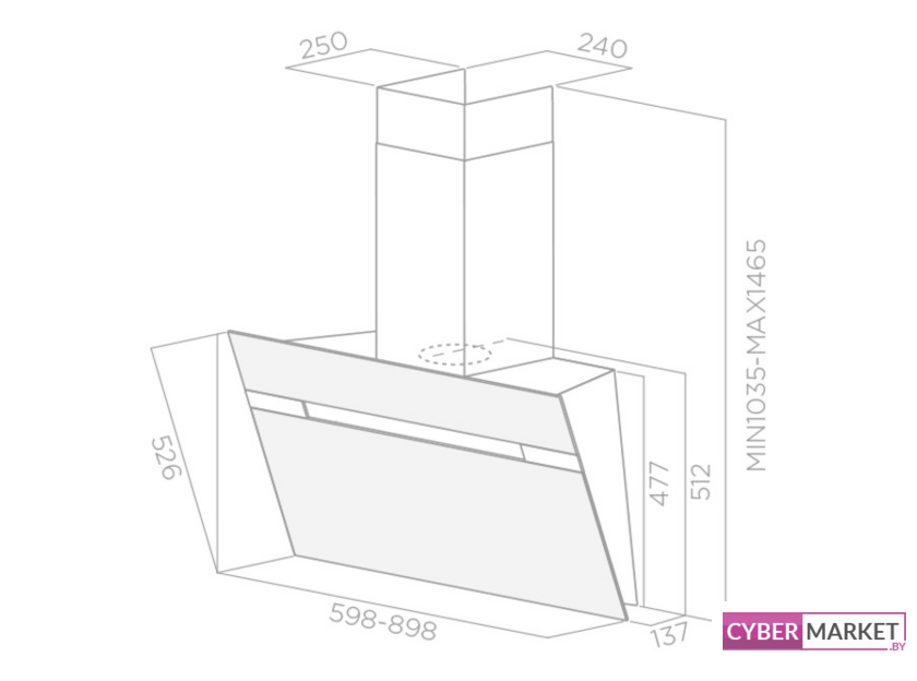 конструкция коробчатая, монтаж настенный, ширина 40.2 см, управление электронное/кнопочное, производительность мотора 1150 м³/ч, цвет медный
