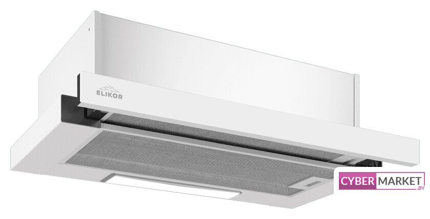 конструкция телескопическая, монтаж для встраивания, ширина 60 см, управление механическое/кнопочное, производительность мотора 430 м³/ч, цвет белый