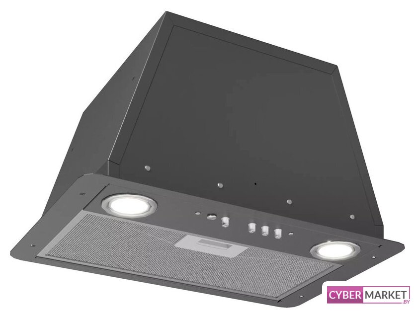 конструкция скрытая, монтаж для встраивания, ширина 59.8 см, управление механическое/кнопочное, производительность мотора 720 м³/ч, цвет черный