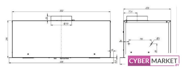 монтаж настенный, управление кнопочное, производительность мотора 650 м³/ч, ширина 60 см