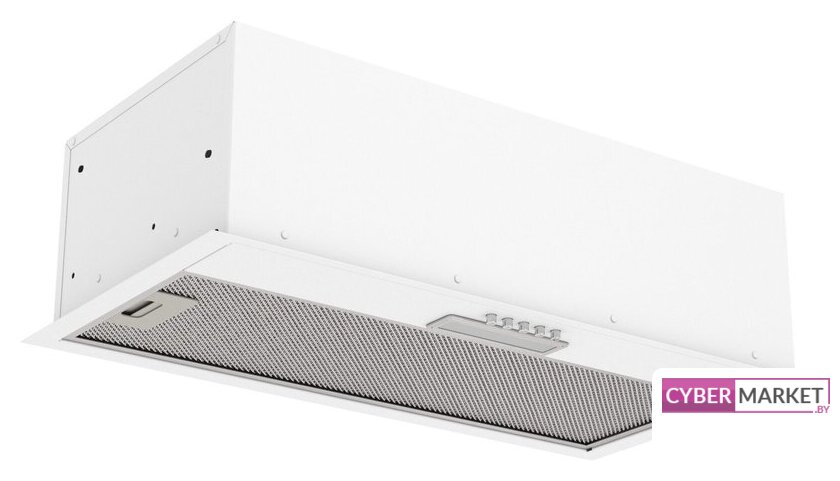 конструкция телескопическая, монтаж для встраивания, ширина 59.7 см, управление механическое/кнопочное, производительность вытяжки 450 м³/ч, производительность мотора 500 м³/ч, цвет белый