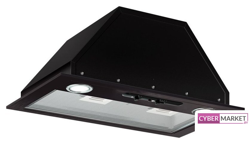 конструкция скрытая, монтаж для встраивания, ширина 52.6 см, управление механическое/кнопочное, производительность мотора 550 м³/ч, цвет черный
