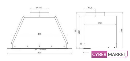конструкция скрытая, монтаж для встраивания, ширина 52.5 см, управление механическое/кнопочное, производительность мотора 450 м³/ч, цвет нержавеющая сталь