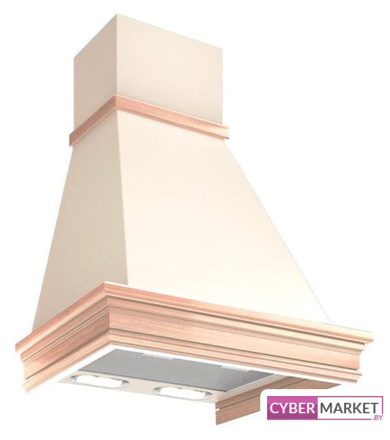 конструкция купольная, монтаж настенный, ширина 59.4 см, управление электронное/кнопочное, производительность мотора 650 м³/ч, цвет бронзовый/кремовый