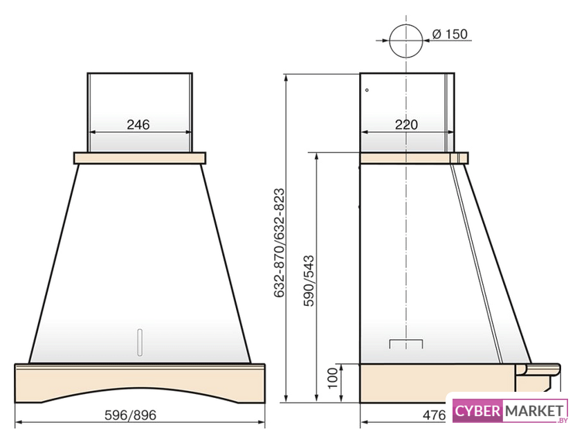 конструкция коробчатая, монтаж настенный, ширина 59.8 см, управление сенсорное, производительность мотора 1100 м³/ч, цвет белый