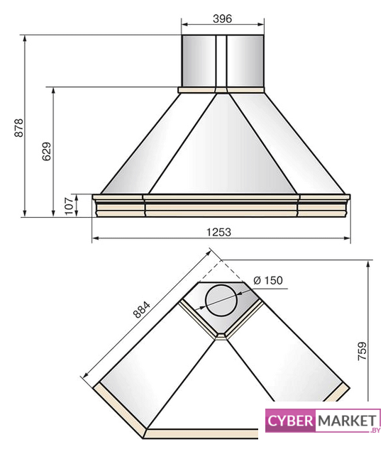 конструкция Т-образная, монтаж настенный, управление сенсорное, производительность мотора 850 м³/ч, ширина 60 см