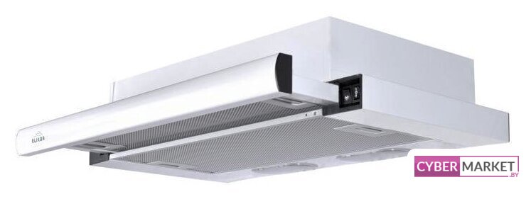 конструкция телескопическая, монтаж для встраивания, ширина 50 см, управление механическое/кнопочное, производительность вытяжки 177 м³/ч, производительность мотора 520 м³/ч, цвет белый