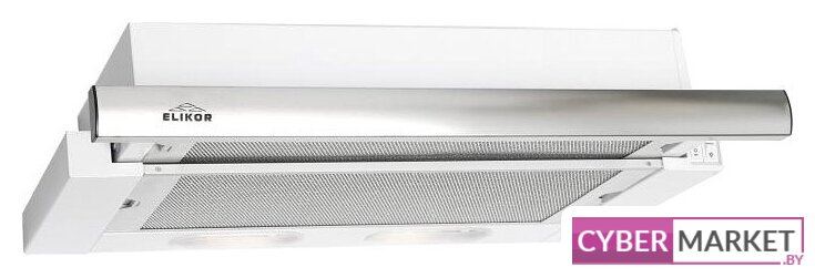 конструкция телескопическая, монтаж для встраивания, ширина 60 см, управление механическое/кнопочное, производительность мотора 600 м³/ч, цвет белый