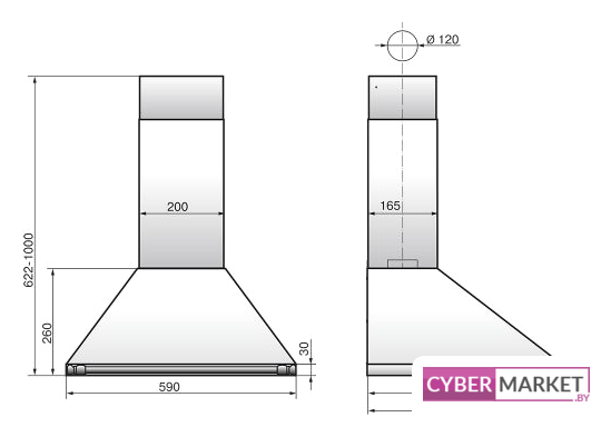 монтаж настенный, управление кнопочное, производительность мотора 650 м³/ч, ширина 60 см