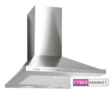 конструкция наклонная, монтаж настенный, ширина 60 см, управление механическое/кнопочное, производительность мотора 520 м³/ч, цвет серый/черный