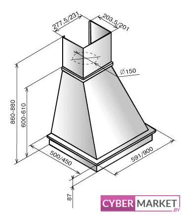 конструкция скрытая, монтаж для встраивания, ширина 59.8 см, управление механическое/кнопочное, производительность мотора 1150 м³/ч, цвет бежевый