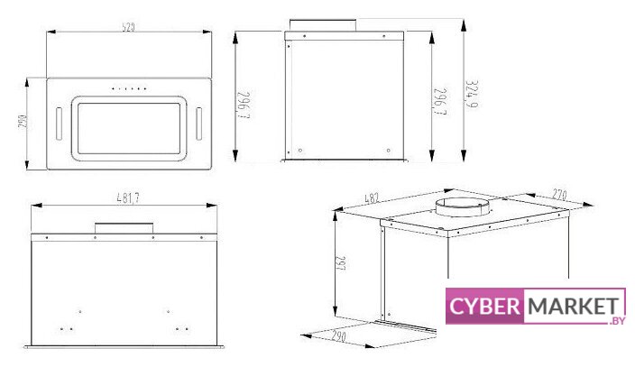 монтаж настенный, управление механическое/кнопочное, производительность мотора 390 м³/ч, ширина 60 см