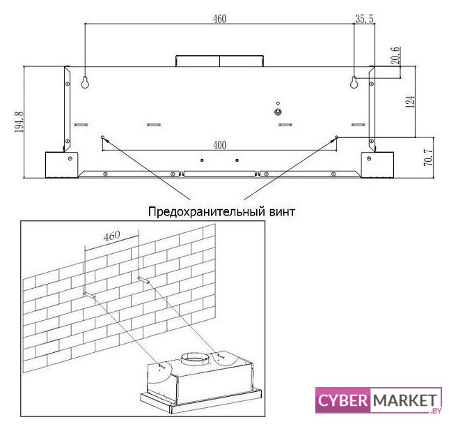 монтаж настенный, управление слайдерное, производительность мотора 320 м³/ч, ширина 50 см