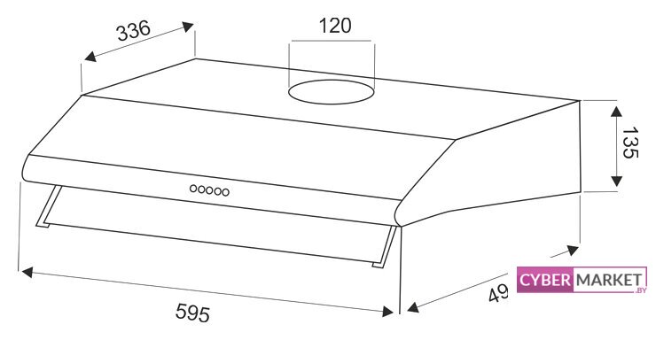 конструкция плоская, монтаж настенный, управление кнопочное, производительность вытяжки 174 м³/ч, ширина 60 см