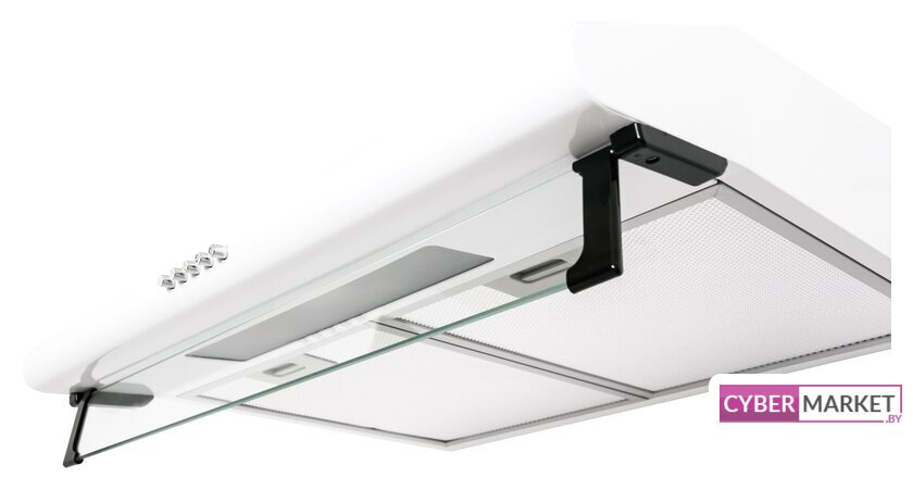 конструкция плоская, монтаж настенный, управление кнопочное, производительность вытяжки 174 м³/ч, ширина 60 см