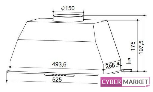 конструкция купольная, монтаж настенный, ширина 49.5 см, управление механическое/кнопочное, производительность мотора 620 м³/ч, цвет нержавеющая сталь