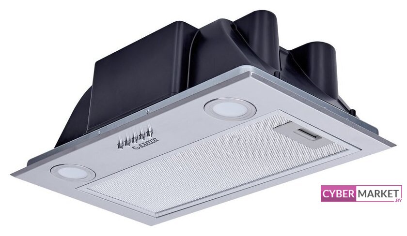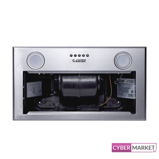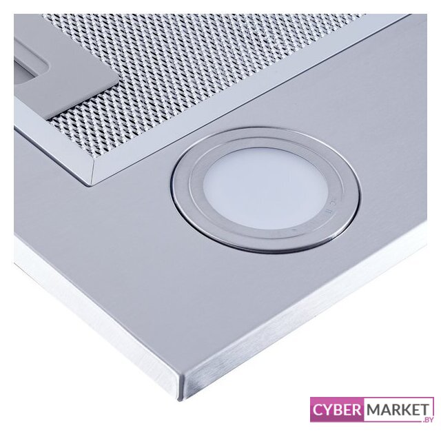 конструкция телескопическая, монтаж для встраивания, ширина 59.5 см, управление механическое/кнопочное, производительность мотора 600 м³/ч, цвет нержавеющая сталь