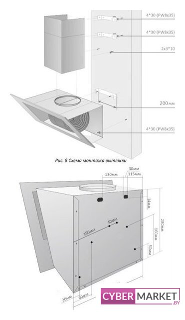конструкция наклонная, монтаж настенный, управление кнопочное, производительность мотора 650 м³/ч, ширина 60 см