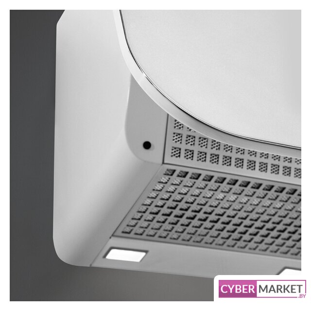конструкция коробчатая, монтаж настенный, ширина 35 см, управление электронное/кнопочное, производительность вытяжки 490 м³/ч, производительность мотора 800 м³/ч, цвет белый