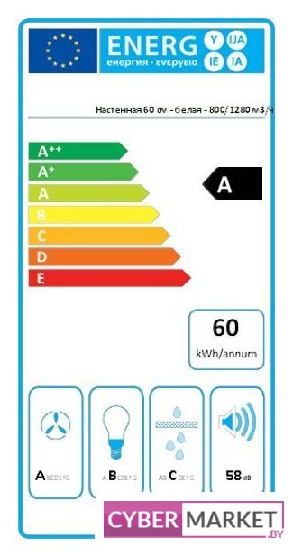 | Годовой расход электроэнергии | 60 кВт·ч/год |