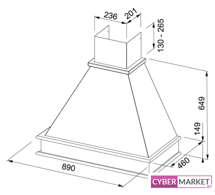 конструкция купольная, монтаж настенный, ширина 59.8 см, управление механическое/кнопочное, производительность мотора 650 м³/ч, цвет золотой/слоновая кость