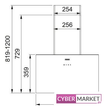 конструкция наклонная, монтаж настенный, ширина 59.5 см, управление сенсорное, производительность мотора 1000 м³/ч, цвет черный