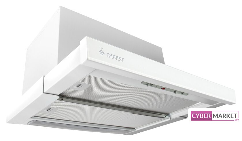 конструкция скрытая, монтаж для встраивания, ширина 53 см, управление механическое/кнопочное, производительность мотора 1080 м³/ч, цвет белый