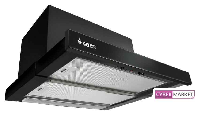 конструкция скрытая, монтаж для встраивания, ширина 53 см, управление механическое/кнопочное, производительность мотора 520 м³/ч, цвет черный