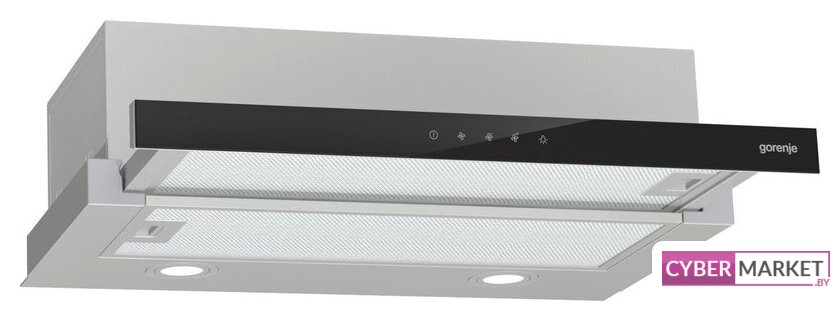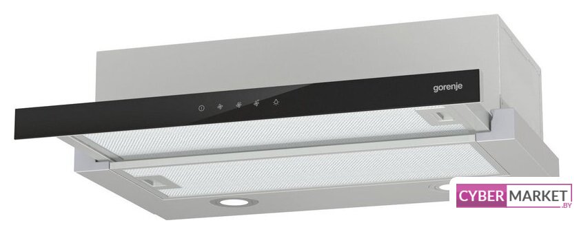 конструкция скрытая, монтаж для встраивания, ширина 53 см, управление электронное/кнопочное, производительность мотора 850 м³/ч, цвет нержавеющая сталь/черный
