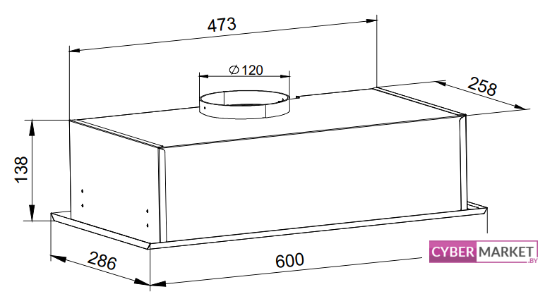 конструкция купольная, монтаж настенный, управление механическое/слайдерное, производительность мотора 320 м³/ч, ширина 60 см