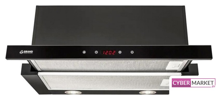 конструкция телескопическая, монтаж для встраивания, управление механическое/кнопочное, производительность мотора 390 м³/ч, ширина 50 см