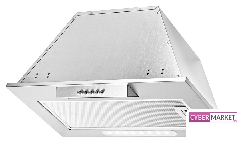конструкция скрытая, монтаж для встраивания, ширина 60 см, управление механическое/кнопочное, производительность вытяжки 700 м³/ч, производительность мотора 850 м³/ч, цвет черный