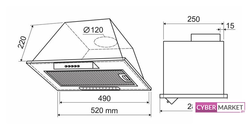 конструкция плоская, монтаж настенный, ширина 59.5 см, управление механическое/кнопочное, производительность мотора 430 м³/ч, цвет черный